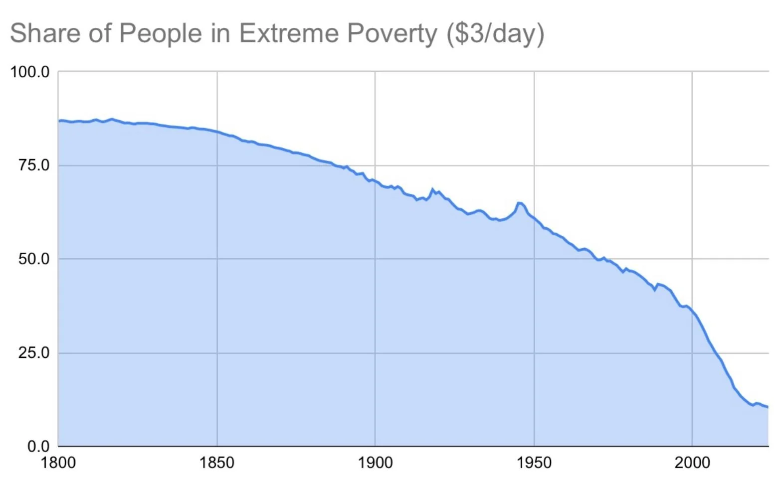In the 1800’s 90% of the world lived in extreme poverty. And since the 1800’s you see a slow gradual decline.